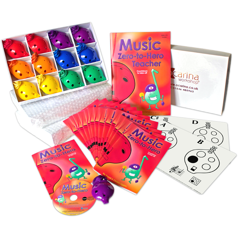 Zero-to-Hero Whole Class Pack equips 36 ocarina-players with a 4-hole Ocarina and 'Music Zero-to-Hero' Class Music book each, for just £13.83 per child.