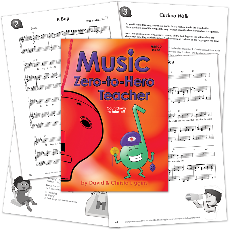 Zero-to-Hero Teacher is included FREE and comes complete with the CD for everyone to sing and play along with, plus piano parts, guitar/ukulele chords, ideas for including percussion and notes for teaching each song.