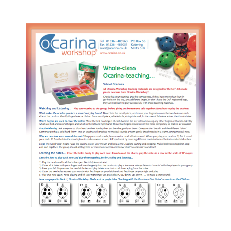 Here at Ocarina Workshop, we believe that any Class Teacher can teach the Ocarina, whether you consider yourself to be musical or not. Our teaching materials are designed to help you every step of the way by giving you lots of practical ideas, hints and tips on Whole-Class Ocarina Teaching.