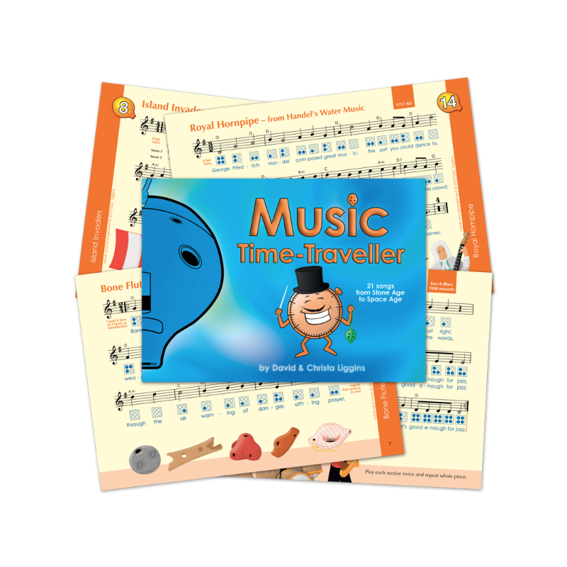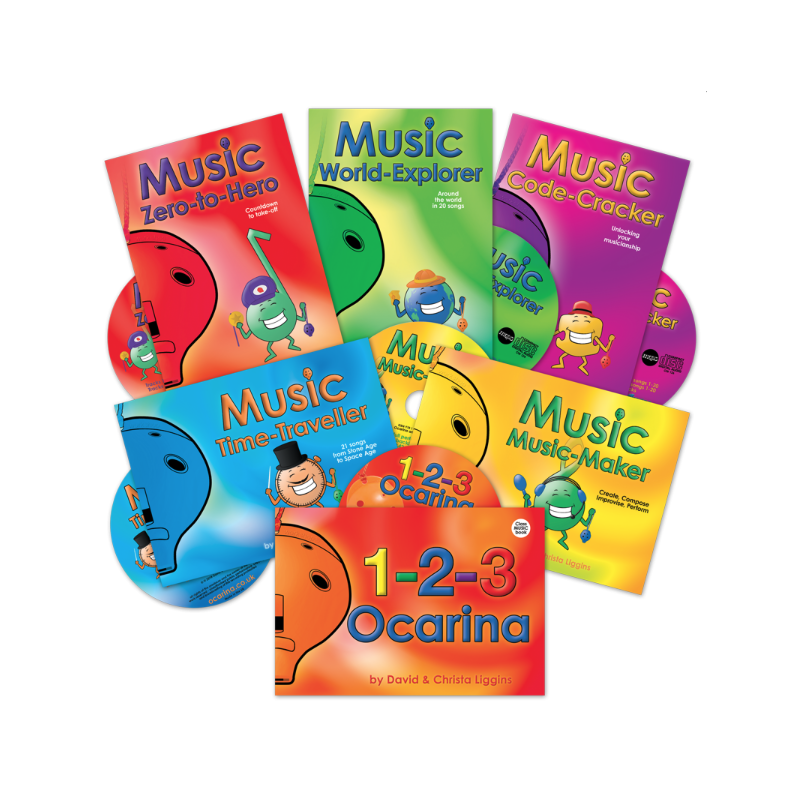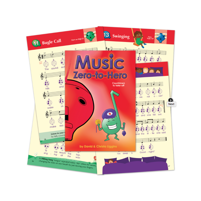 Contents of all Adventurous Music-Making and Play Your Ocarina Books are listed in this document, with actual pages from the Adventurous Music-Making books.