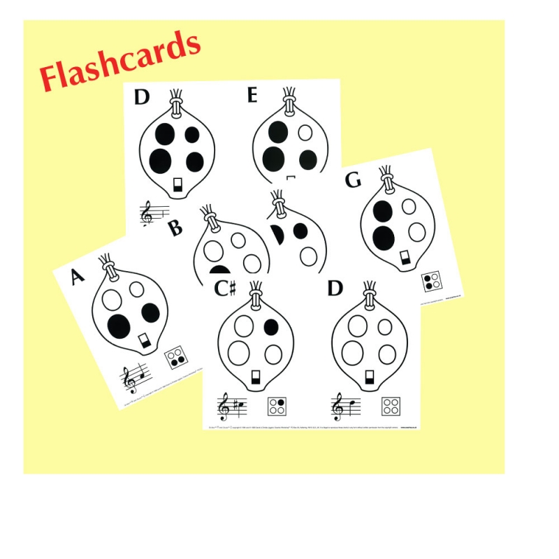 Flashcards of Ocarina Notes; made in the UK for Ocarina Workshop from high-quality PVC. These A4 flashcards show the main ocarina notes for class use. Supplied with Teaching Notes.