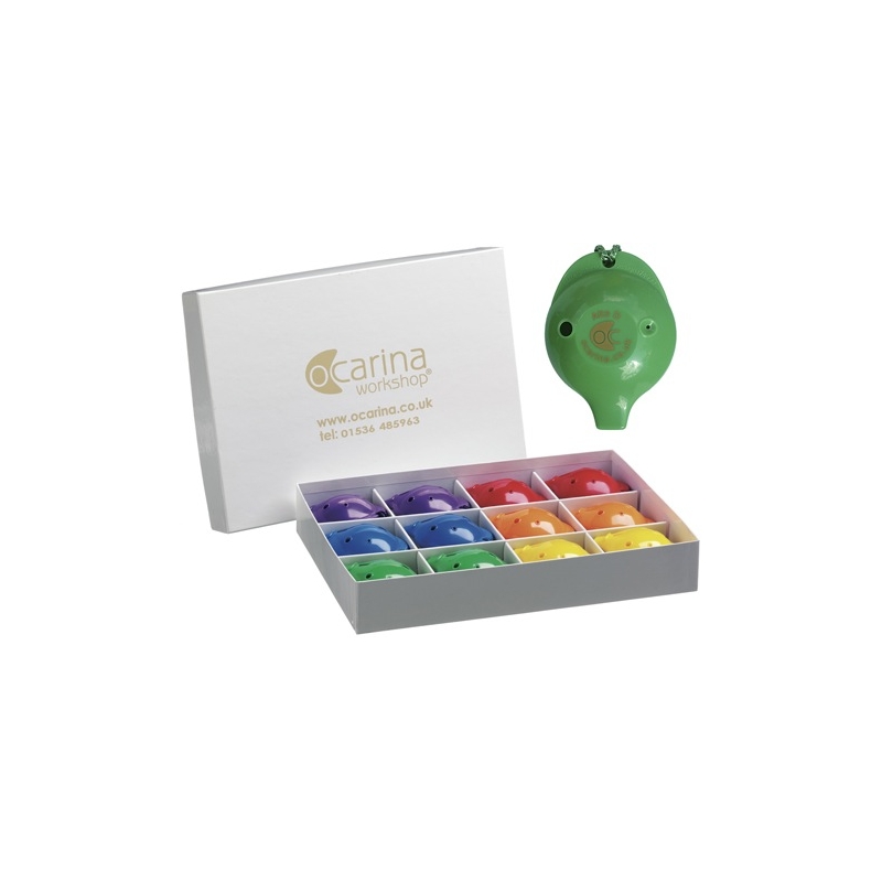 This pack comprises 12 Ocarinas (6-hole) all neatly supplied in a strong and sturdy box making it ideal for classroom storage, with instruments to hand for daily use.