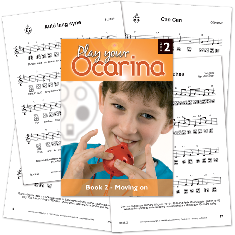 Book 1 'Starting Off', Book 2 'Moving On', Ocarina Carols, Songs of Praise, 1-2-3 Ocarina, Music Zero-to-Hero, Music Code-Crcacker, Music Music-Maker, Music World-Explorer or Music Time-Traveller (see links below).