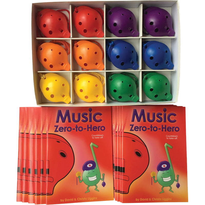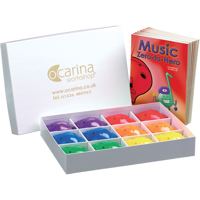 The Music Zero-to-Hero Starter Box provides 12 players with a 4-hole Oc and 'Music Zero-to-Hero' music book each.